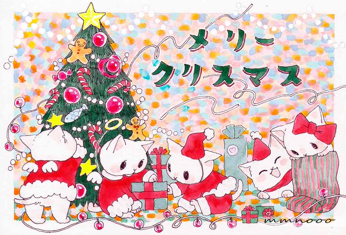 メリークリスマス! 猫たちのクリスマス。 #イラスト #アナログイラスト