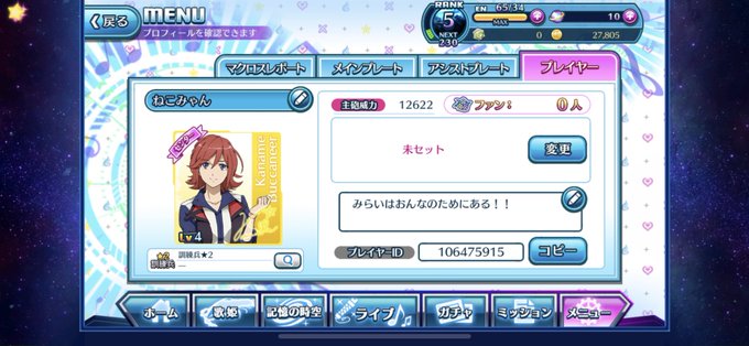 歌マクロス出戻りしました!1からなので誰かフレンドに…( ◜௰◝ )