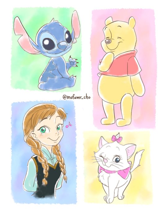 プーさん、スティッチ、マリーちゃんとアナです!