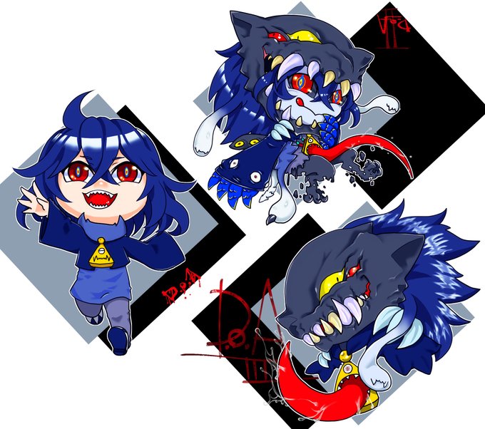 デフォルメの色塗り難しいぜ!!!! 企画に出してた(出してる)デュラハン系二人。左のが闇が深い。右はだんだん元凶の化け物に近付いてきた…