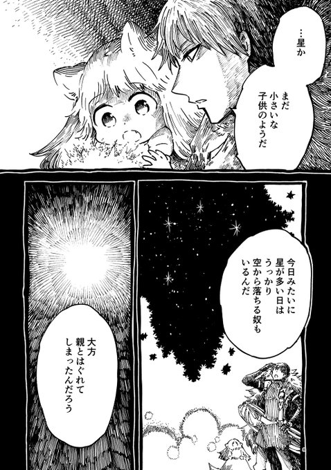 人狼幼女が森でお星さまを拾うお話です。