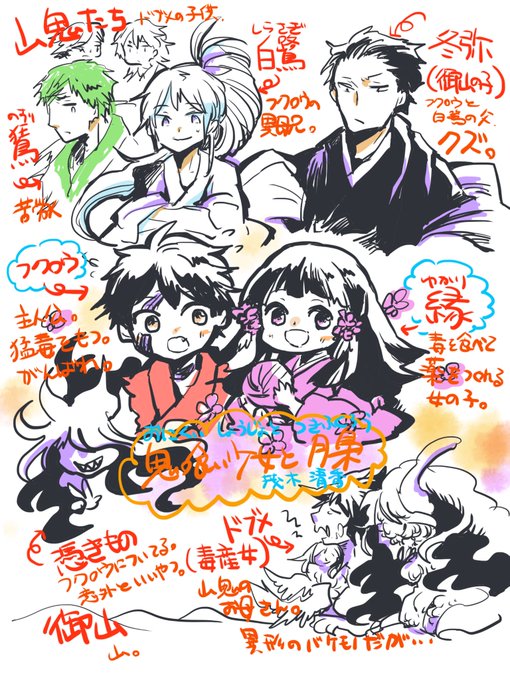 現在、和風ファンタジー漫画「鬼喰い少女と月梟」1巻が各電子書店で無料期間中なのでキャラ表作ってみました。