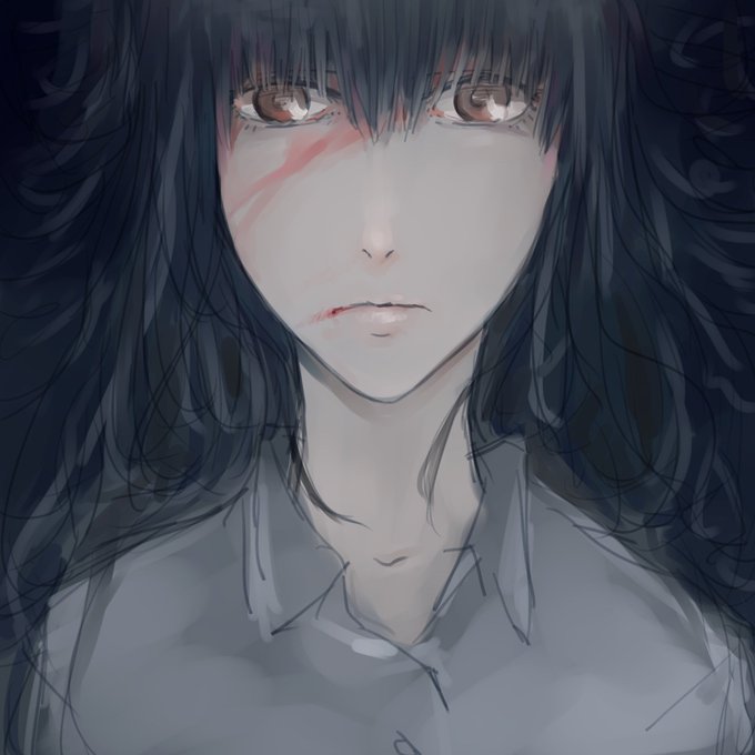 #傷もの版深夜の真剣お絵描き60分一本勝負 お題「黒髪」 上げ忘れです申し訳ございません。