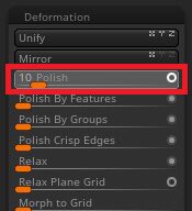 Tool>DeformationからPolishなどの使いたいものを選び、つまみを動かすことでPolishなどかけられます。