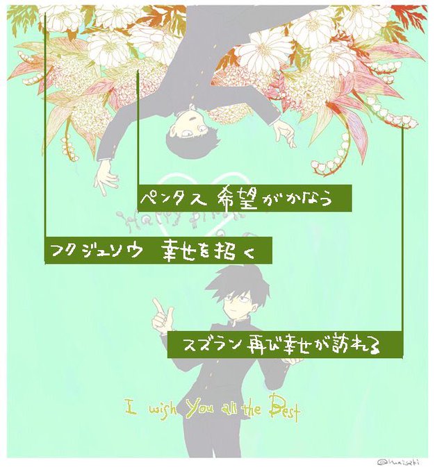 従姉妹(@maisaki )が誕生日イラストが出来上がったと送ってくれたー!!うひょー!!モブサイコだー!!32歳になって環境がガラリと変わったので、花言葉が心に染み渡る..!!ありがとう!!(ちなみに誕生日は9月