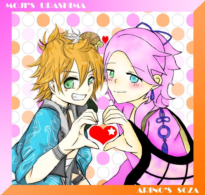 @moj11san 5月 新しくアカウント作ったからテンションあがってなんかいろいろかいてた 最初はあおえとかパッパとか幼児にしてのっけてた ありのおじしゃ(@izmarn)と近侍でハートつくる合作のえをかく*◜ - ◝*