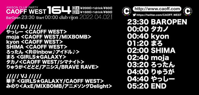 今週末の #アニクラ はカオフです!!