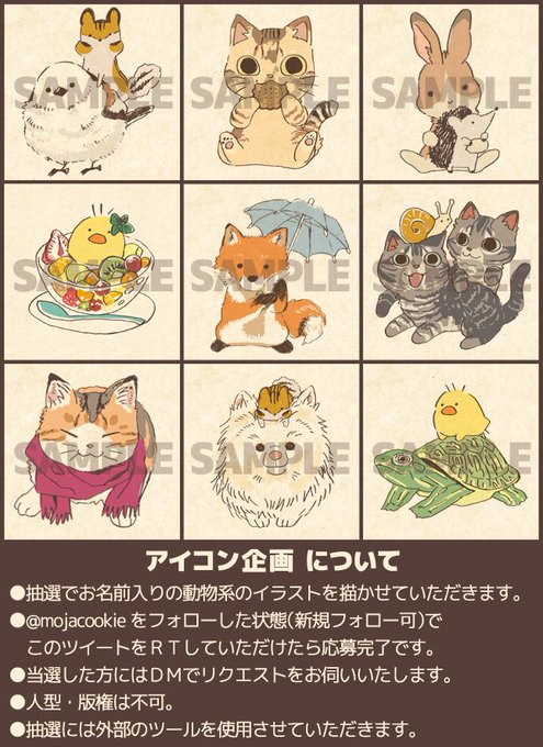 突然ですがアイコン企画を行います。このツイートを[2/15 23:59]までにRTされたフォロワーさん(新規可)の中から抽選で5名の方!へ、お名前入りの動物のイラストを描かせていただきます!