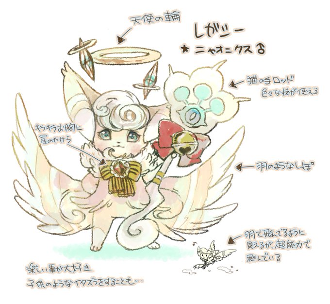 ★ニャオニクス♂レガシーです!猫の手ロッドで色々な技を使いこなすよ!羽のように見える尻尾はただの尻尾。超能力でふよふよお空を飛びまわります! #うちの子ポケモン紹介