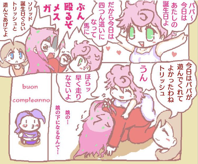 4枚目は今は亡きジョジョピタとかいうゲームで、ボスにドナテラの写真を渡すとボスが精神にダメージを受けてしまう演出があったので描いた漫画