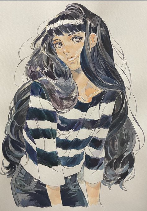ペン画から水彩とアクリル絵の具の併用で作品を作っています!🌸女の子の豊かな髪の毛が好きな人です✨素敵なタグをありがとうございます😊🏷
