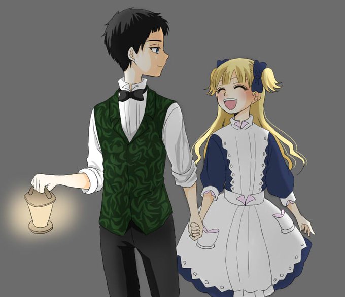 #シャドーハウス いよいよ最終回ですね。 ハグは無いだろうけど何かしら密着してほしいという気持ちで描いたションエミ。 まあ予告映像見る限り絶対無さそうだけど(笑) あ~2期やらないかな~