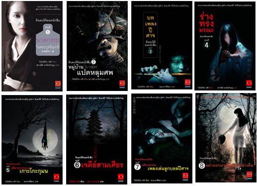 久しぶりにタイ版の横溝正史のカバー絵を。順に『蝶々殺人事件』『幻の女』『真珠郎』。イラストレーターが変更になったのか、以前とタッチが変わっていますね(4枚目を参照)。