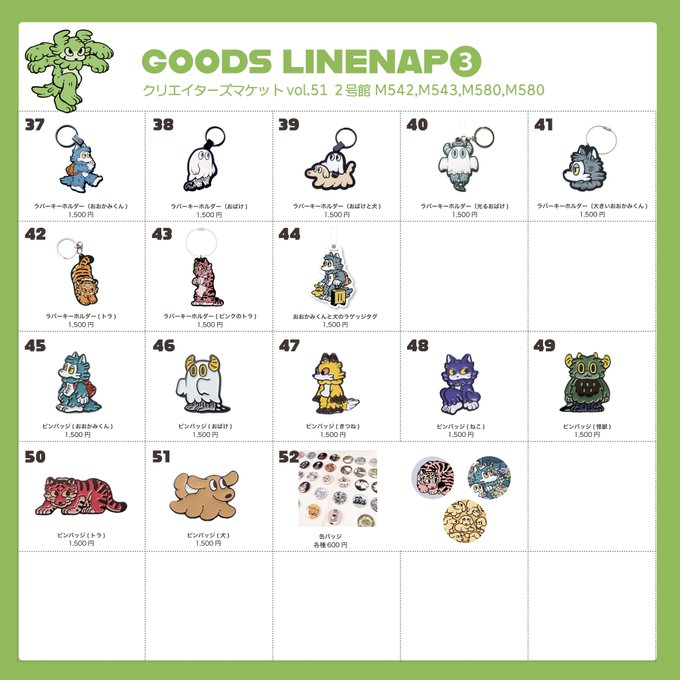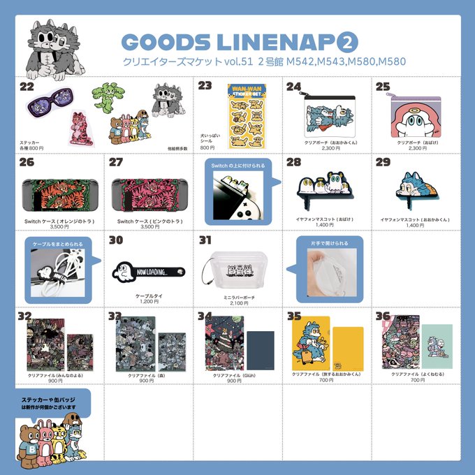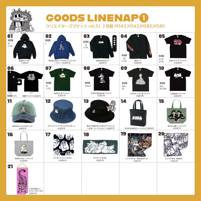 ぎりぎりで申し訳ございません。週末のクリマのグッズラインナップ表になります(∩´`)∩