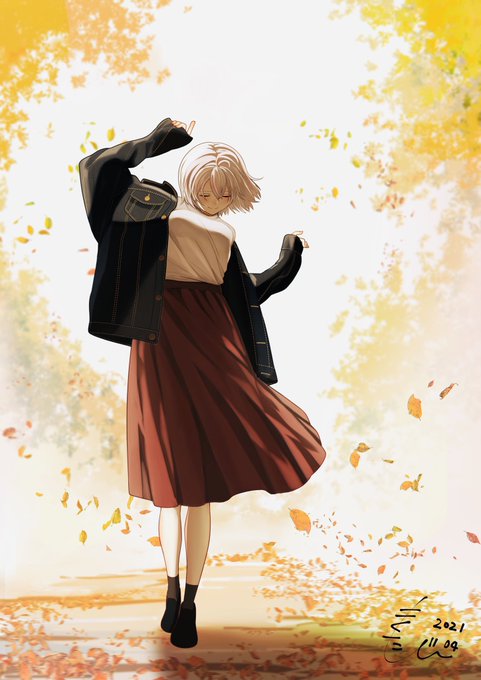 #今月描いた絵を晒そう 秋服シロちゃんシリーズ