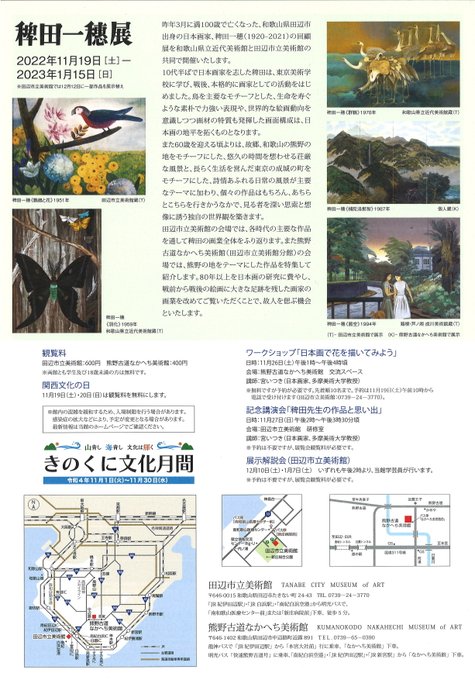「稗田一穗展」は、稗田の生まれ故郷である田辺市へ巡回し、田辺市立美術館と熊野古道なかへち美術館で開催されます。(会期:11月19日〜2023年1月15日)