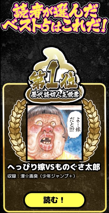 画業30周年記念の画太郎先生の歴代読切人気投票企画、結果発表しました。