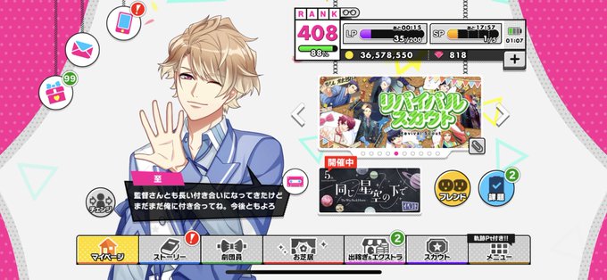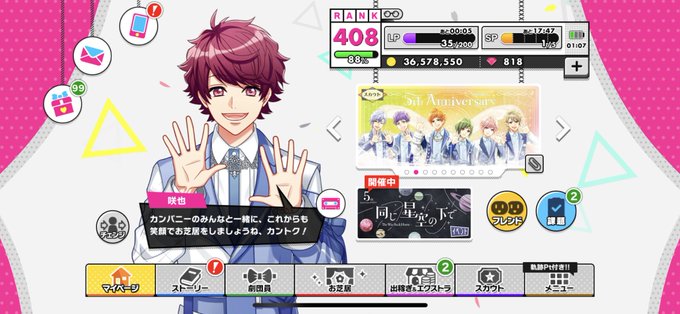周年動画が毎回涙ちょちょ切れるけど、今回もうるうるしてたら最後の咲也の少女漫画っぷりに嗚咽した〜〜😭😭😭😭😭😭 5周年ボイスも感慨深いなぁ🌸