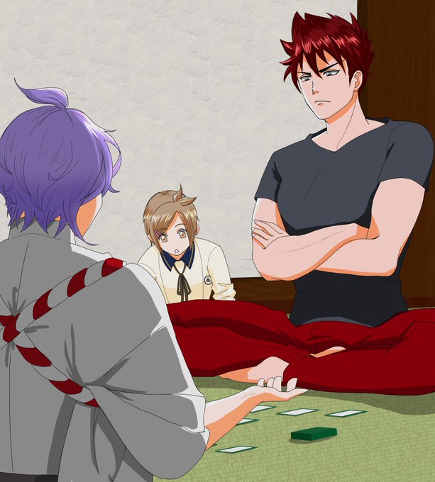 歌仙に花札を教えてもらってる大包平と包丁藤四郎
