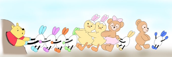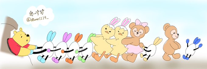 リクエストもらったドナプーうさピヨ🐣 プーさんの顔描けなかったから、ハチミツ壺🍯に入れちゃいました、ごめんね🙇♀️