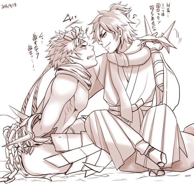 昨日のリク絵!「鬼村ともも梵の戯れ」というお題でしたが戯れというか捕獲になった…「アンタが最近城下で噂になってる『賽の河原の鬼』って奴かい?」この後お持ち帰られてずんだ団子で餌付けられる。「そ、そんな物で某が気を許すと…む…うまい」