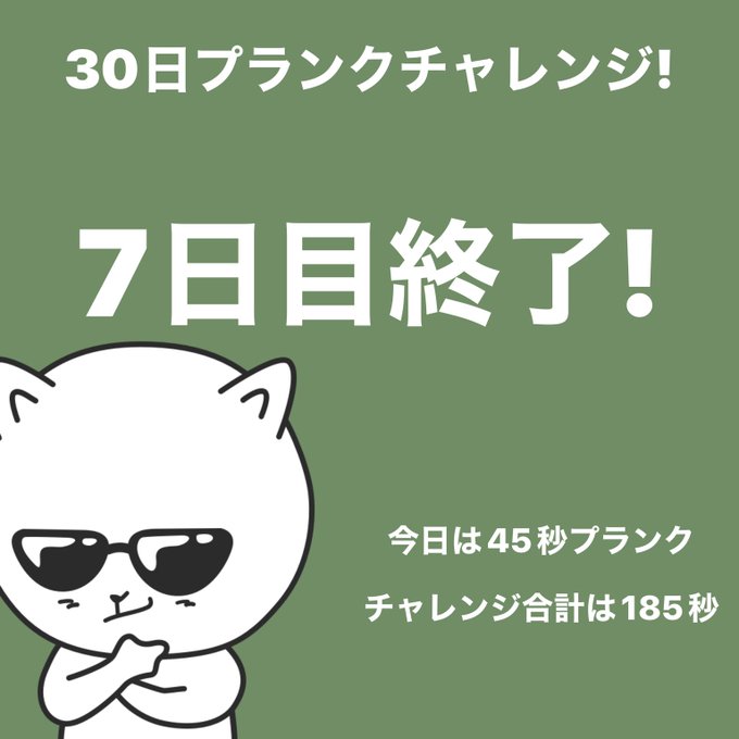 #プランクチャレンジ 7日目終了!今日は45秒プランクしました。 #30日チャレンジ https://t.co/RCNHTYRRA2 もうかなり限界が近い