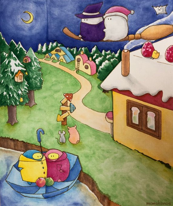 #イラスト #illustration #オリジナルキャラクター #傘屋さん #絵描き屋さん #くいしんぼう #マーボ #魔法使い #アナログ #水彩色鉛筆 #私の絵柄が好みって人に見てもらえたらハッピー