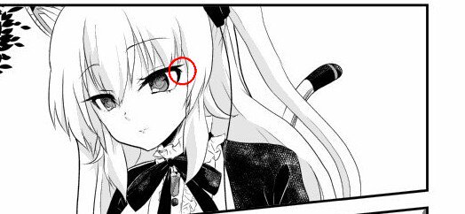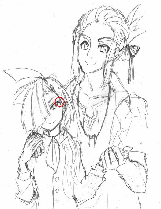 つり目の子とそうでない子の目の書き方の違い。 つり目でない子は途中でまつげのラインが一本飛び出してる。 つり目の子は目尻を少しだけ丸めてある。 あと瞳のハイライトの描き方にちょっと癖がある。