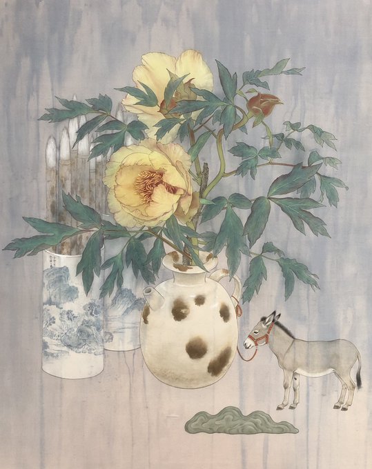 14日まで西武池袋百貨店本店6階ギャラリーにて展示しております。 『探花使』F30 科挙の上位合格者は探花使となり、都の中で一番美しい牡丹の花を探して祝いの宴に持っていく。彼は花を探して存外遠くまで来てしまったらしい。 というか多分迷子。 #日本画 #絹本 #牡丹 #桃山朋々