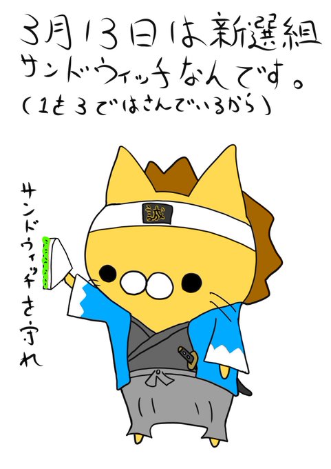 3月13日は、新撰組とサンドウィッチの日なんですって。