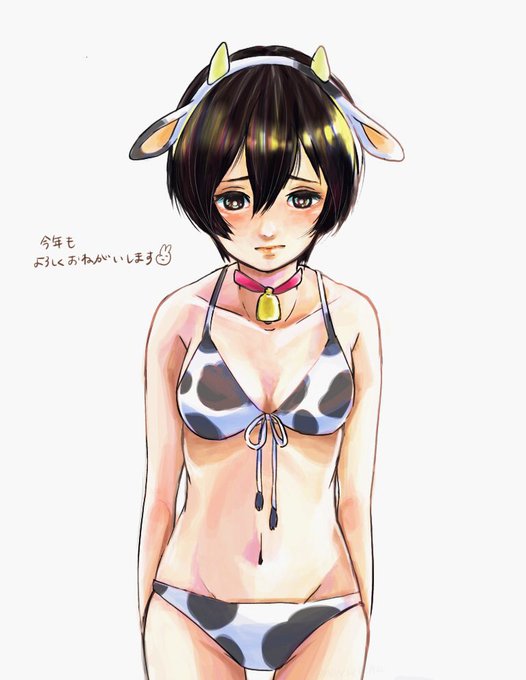 今更ですが推しの牛ビキニが見つからなかったので描きました🐄 今年もよろしくお願いします
