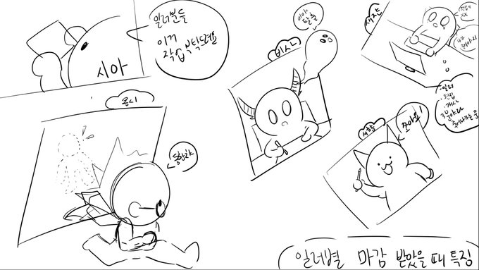 팀원 분들 낙서 그림 +일러별 반응 상상으로 그린 거