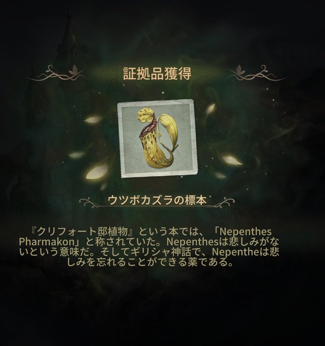 食人木🐙様の衣装名が英語だと“Nepenthes”なんだけど今回の4周年イベント【ベルスタインの靄】には関係ないよね?🥺🥺