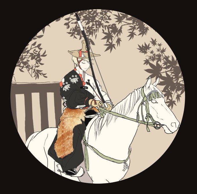 流鏑馬兄者😄(自分で撮った写真のトレスです)膝丸は走ってるとこにしたかったんだけど、走ってるのは上手い写真がなかった…
