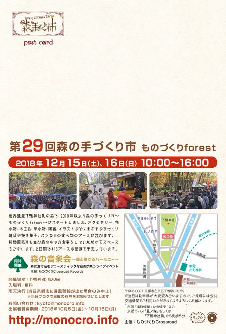 下鴨神社 糺の森でのイベント「第29回森の手づくり市」の開催が決定いたしました。