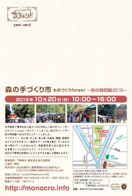 今週末2019年10月20日(日)、下鴨神社 表参道&南口鳥居前にて