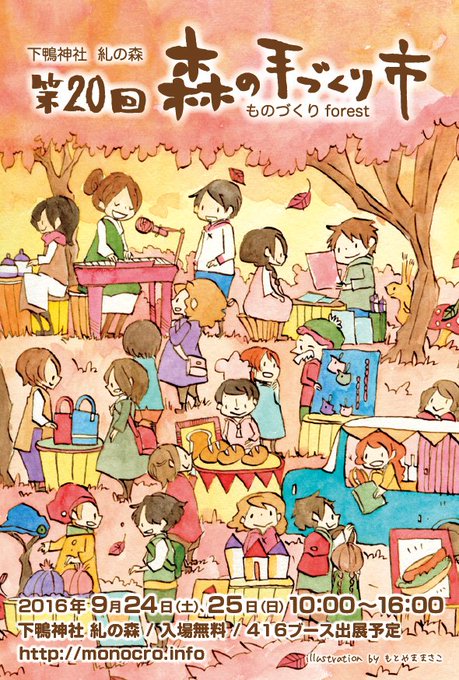 2016年9月24日(土)、25日(日)に下鴨神社糺の森で「第20回森の手づくり市」を開催します。