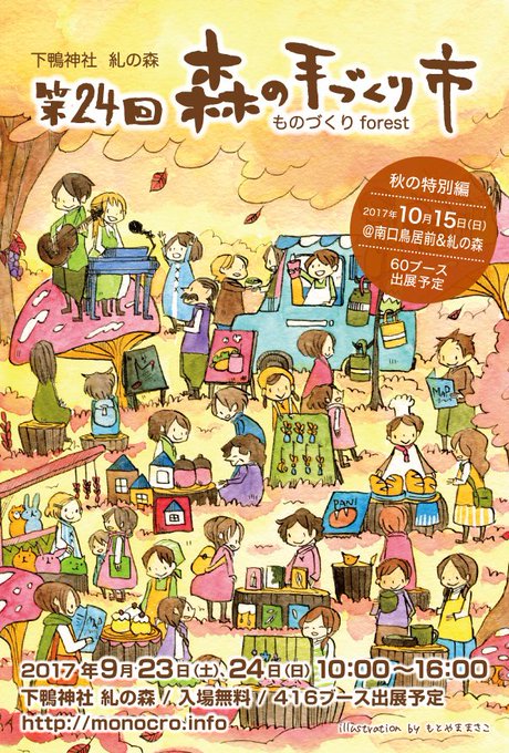 今年はさらに「森の手づくり市~秋の特別編~」として2017年10月15日(日)にも開催します。