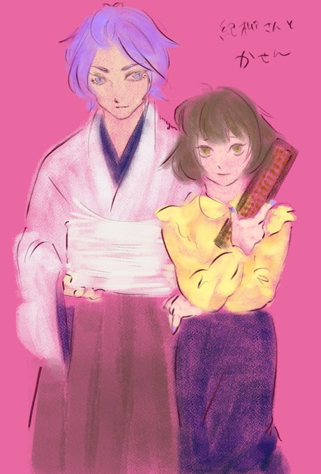 紀柳さん&歌仙です☘️ そろばんパチパチ経理つよつよさにわ。紀柳さん本丸の歌仙は書類仕事大丈夫なタイプ。