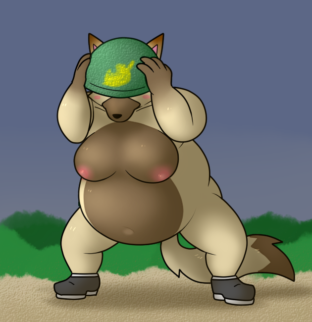 落書き清書で太ましオオカミ獣人兵士 メットでガード