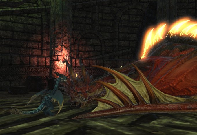 [FFXIV shenanigans] oh my GOD I just noticed all the tiny baby dragons... sleeping under the big ones' wings... I can't 😭 I love this game
