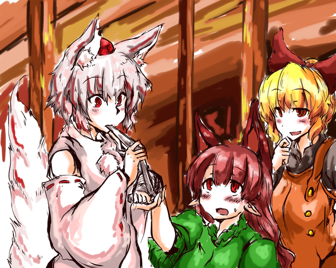 #自分の為の一時間お絵描き 『こちら守矢☆放送局です! 最近私東風谷早苗の出番が少ないので手始めに適当に妖怪退治をしてみようと思います! 公平にくじ引きで決めた結果~…今回は黒谷ヤマメさん!そして八橋弁々さんになりました~☆』