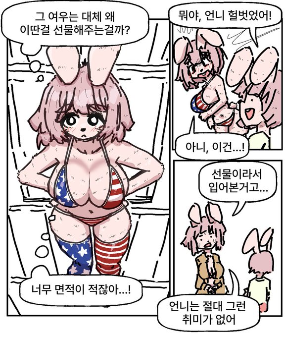 선물받은 비키니를 입어보다 동생에게 제대로 걸린 토끼 과장