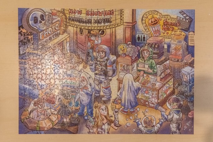 #รีวิวจิ๊กซอว์ ลาย Halloween Game Center 1,000 ชิ้น ออกแบบโดยคุณ @ib_bun ลายน่ารักมากๆๆๆ จริงๆ เขาเปิดพรีหลายลาย แต่จังหวะนั้นมีเงินจองลายเดียว ฮ่าๆๆ และลายแบบนี้เป็นลายที่ต่อสนุก พวกรายละเอียดเล็กๆ จุ๊บจิ๊บๆ ที่เราค้นพบตอนต่อทำให้มันไม่น่าเบื่อ