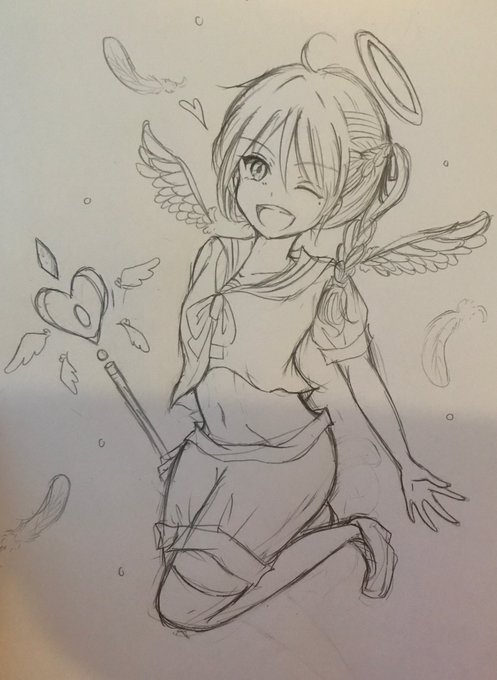 天使っぽい子描いてみた\( ˆoˆ )/ 髪の毛の塗り方を変えてみました^ ^ #絵描きさんと繋がりたい