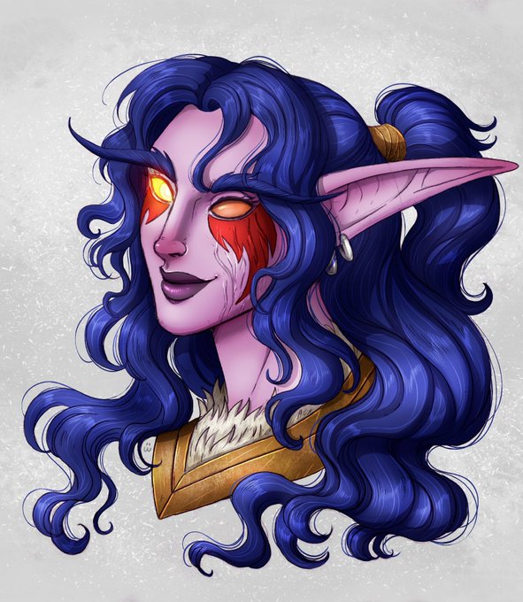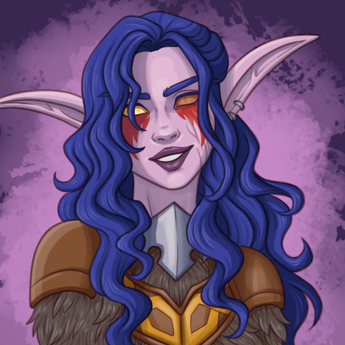 @eluneprismpower Nardulin! Her design reflects her personality; a bit scrappy & messy, not fitting in with the most 'typical' kaldorei garb but doing what feels most right/comfortable for her. The biggest change to her appearance happened being blinded & scarred during the War of the Thorns.