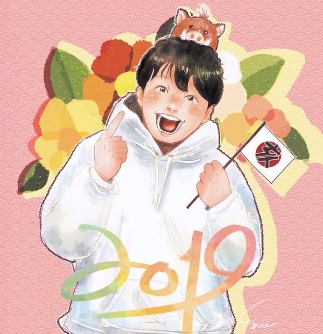 描き始め!🐗🎍🌅