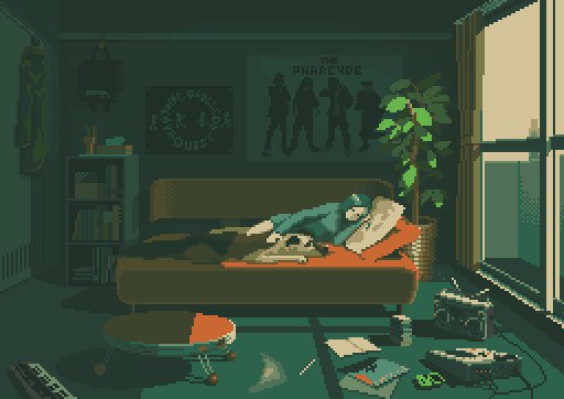 #pixelart #ドット絵 部屋で犬と昼寝してる図です