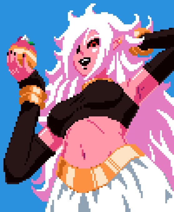 Android 21 pixel art for an upcoming Dragon Ball collaboration w/ @cobb_thedrummer 🧁🤖