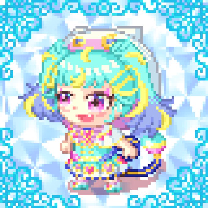 去年の今頃に描いたドット絵再掲 ラテアートのやつ今見たら個人敵にオーパーツなんやが?どうやって描いたんだか… #ドット絵 #pixelart